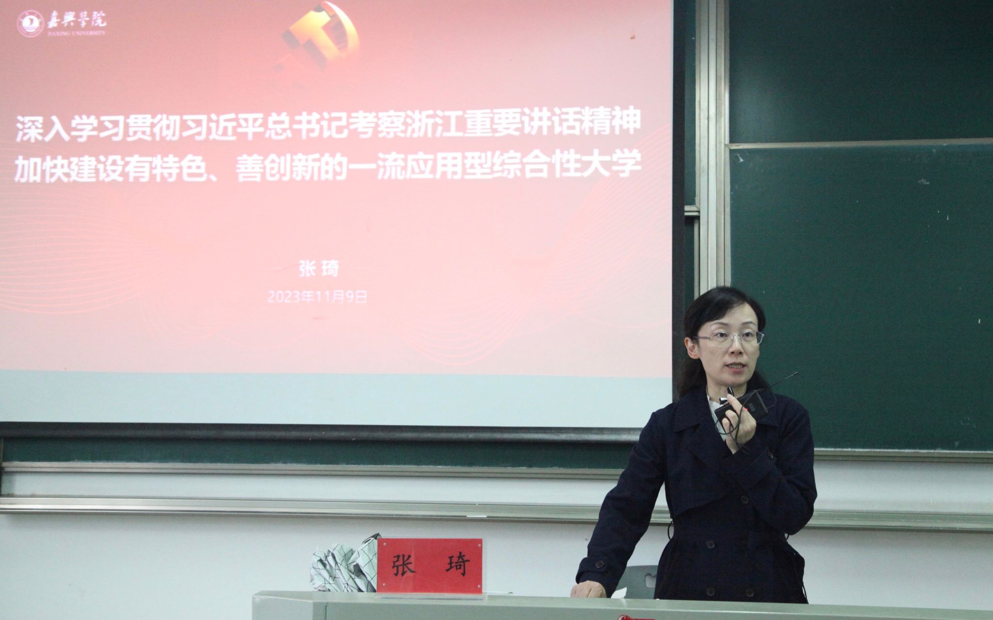 11月9日下午,校党委委员、副校长(主持日常工作)张琦到yd222云顶线路检测中心作主题为“深入学习贯彻习近平总书记考察浙江重要讲话精神 加快建设有特色、善创新的一流应用型综合性大学”宣讲报告会。院长何治主持报告会,学院党政班子成员、全体教职员工现场聆听。