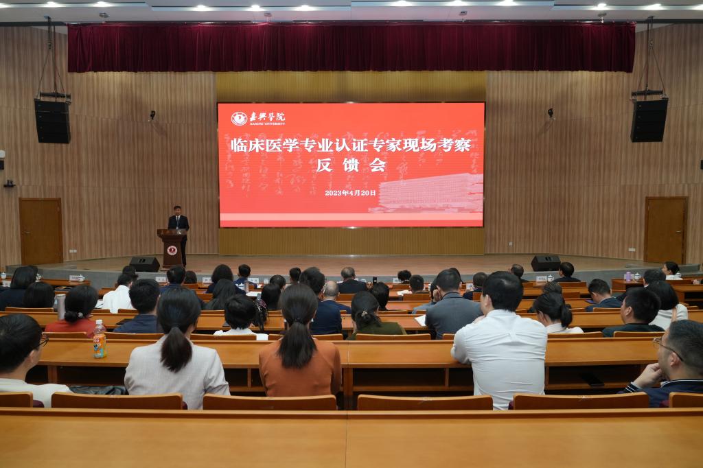 4月20日上午,临床医学专业认证专家现场考察反馈会召开。以哈尔滨医科大学原副校长曹德品教授为组长,汕头大学yd222云顶线路检测中心原执行副院长杨棉华教授为副组长的专家组全体成员,嘉兴市政府副秘书长金球,校领导卢新波、吴云达、钱方明、胡俊云、陈新友、张琦、陈荣达、周宏伟等出席会议。会议由杨棉华教授主持。